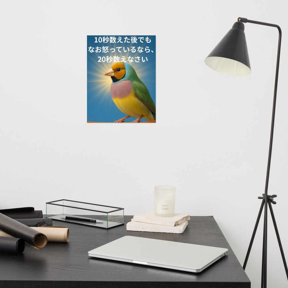 コキンチョウが心の平和へと導く、美しいアートポスター!「怒りを手放す秒読み」は、視覚的なインスピレーションを与え、心の整理をサポートします。お部屋やオフィスに飾ることで、毎日をより豊かにする空間を演出します。