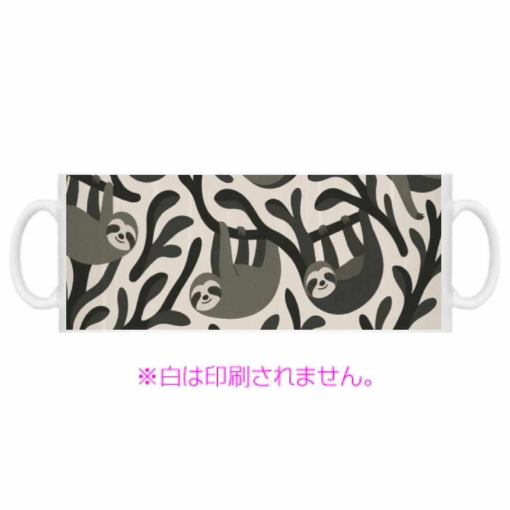 ゆったりと枝にぶら下がるナマケモノたちをモノトーンで表現した、癒しのデザインマグカップ。