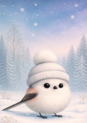 ・白い帽子のシマエナガデザイン